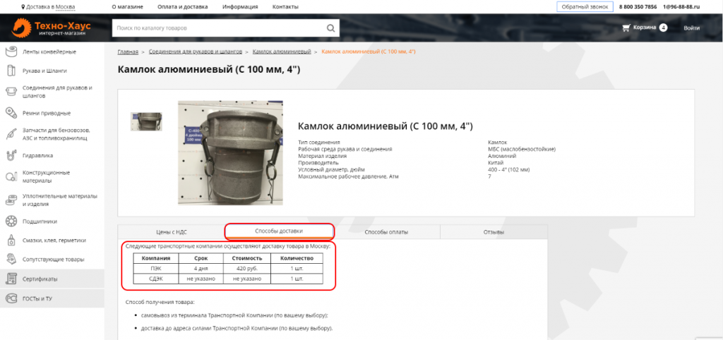 Доставка до терминала транспортной компании в вашем городе - В контактах, на нашем сайте, вы можете увидеть адреса терминалов транспортных компаний в вашем городе. Также, при согласовании метода доставки с менеджерами нашей компании, вы можете выбрать другую транспортную компанию, которая не представлена на нашем сайте.