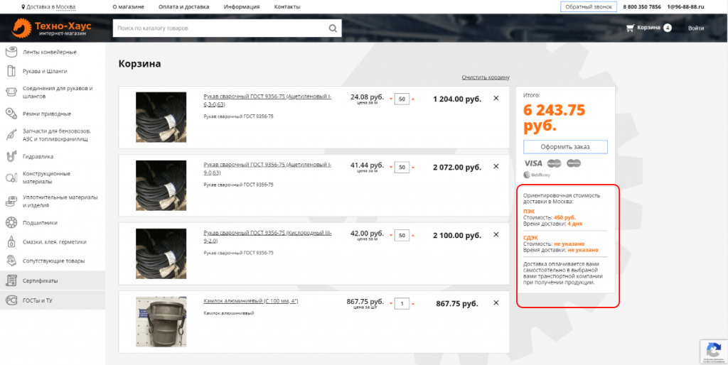 Стоимость доставки в корзине.