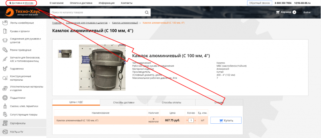 Стоимость доставки в карточке товара.